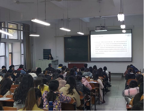 2019年11月26日下午,为深入贯彻落实习近平总书记“不忘初心、牢记使命”主题教育,3003新葡官方网站梁丽娟院长在经管楼1112教室为全体党员上“发扬五四精神,担当时代重任”的主题党课,3003新葡官方网站全体师生党员参加党课。