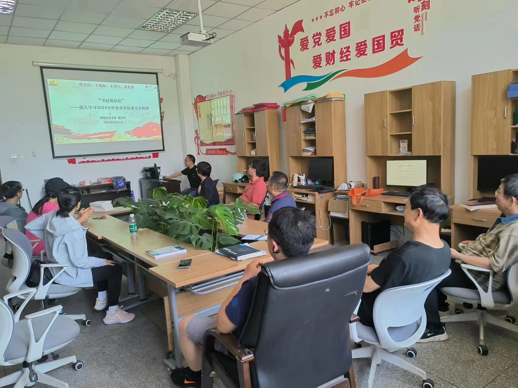 为贯彻落实学校党纪学习教育安排,带领支部党员党纪学习教育走实走深,5月14日,国贸系党支部书记张永恒以“明方向、立规矩、正风气、强免疫”为题作专题党课。本次党课主要围绕二十届中央纪委三次全会的精神进行讲解和交流,旨在深入解读全会提出的两个清醒认识、如何深入推进党的自我革命实践以及如何做好新征程中的反腐败斗争。