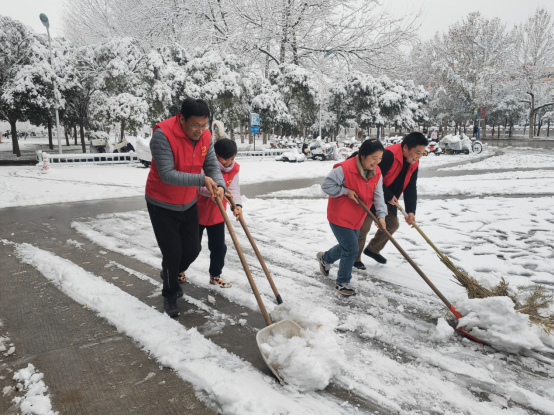 12月10日晚,焦作迎来大规模降雪。为切实保障师生们上下课安全, 11日一早机关党支部全体党员自发开展清扫积雪志愿活动,积极应对降雪给师生造成的不良影响。