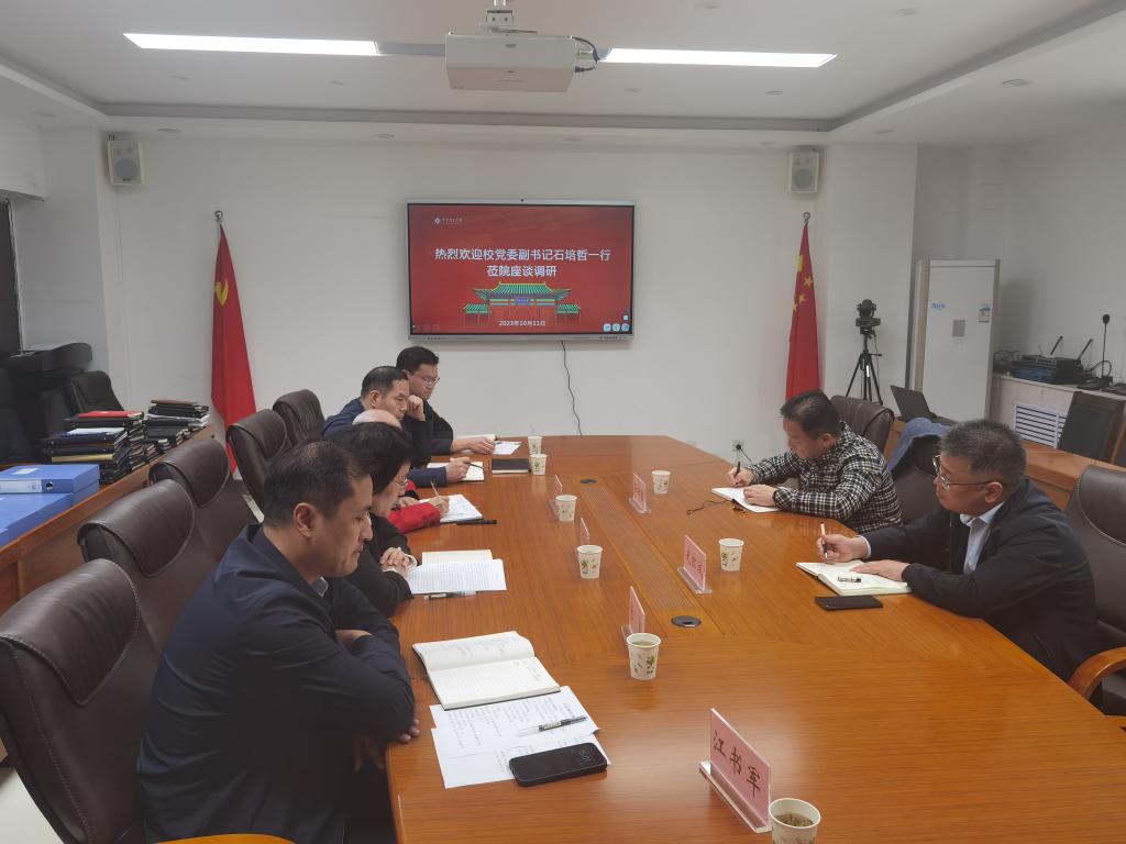 10月11日下午,校党委副书记石培哲深入3003新葡官方网站调研,与学院领导班子成员进行座谈交流,深入了解学院发展建设情况。