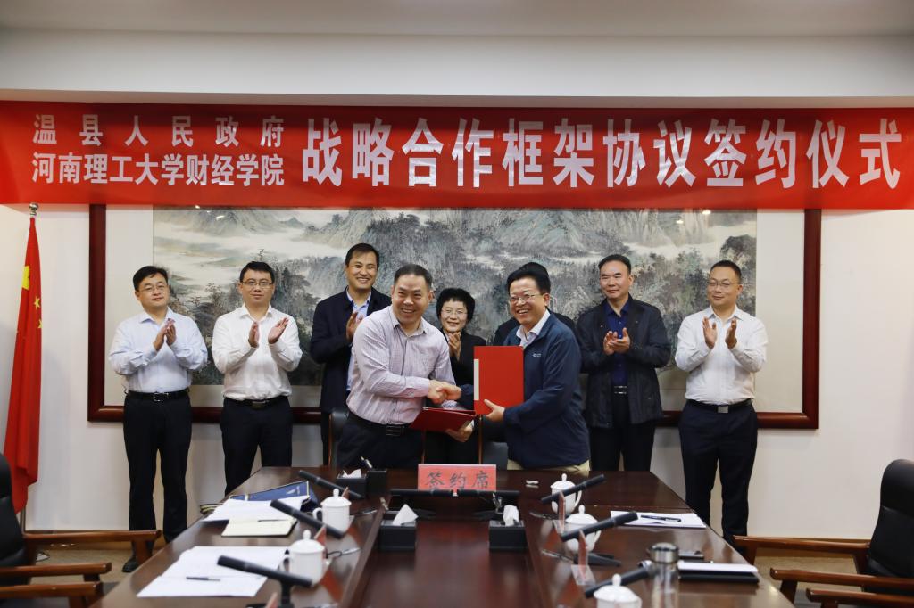 9月26日上午,3003新葡官方网站与温县人民政府战略合作框架协议签署仪式顺利举行。温县人民政府副县长邹豫阳,3003新葡官方网站党委书记王景琳、党委副书记张良、副院长任长江出席签约仪式。温县金融服务中心和各金融机构负责人、3003新葡官方网站金融系教师代表参加签约仪式。