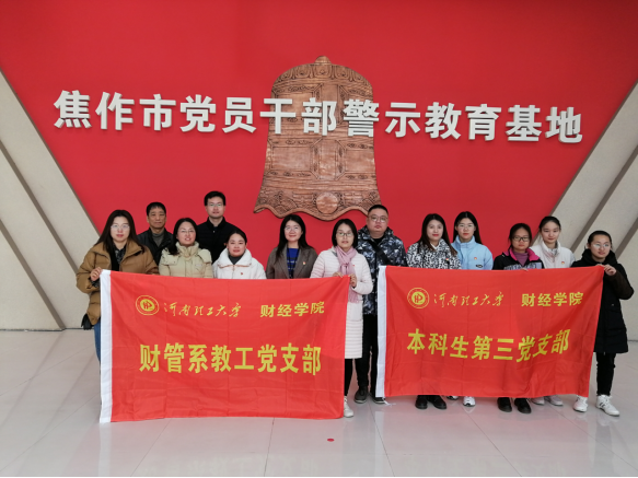 为深入推进党风廉政建设、提高教师队伍廉洁自律意识,筑牢拒腐防变的思想道德底线,切实加强支部党员监督、管理和教育12月7日,财管系支部前往焦作市委党校反腐倡廉教育基地,开展了“警钟长鸣守初心,清正廉洁担使命”主题党日活动,财务管理系全体教师和财务管理专业部分学生党员代表,参加了此次活动。