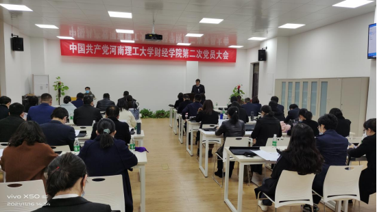 11月16日下午,中国共产党河南理工大学3003新葡官方网站第二次党员大会在经管楼1308举行,3003新葡官方网站全体教工党员和学生党员代表52人参会。会议由3003新葡官方网站党委副书记张良主持。