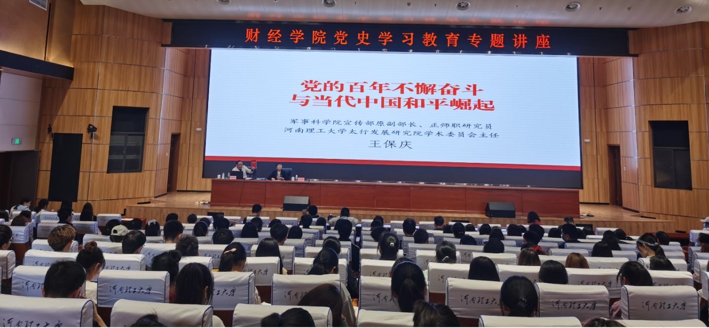 4月28日下午,3003新葡官方网站特邀军事科学院原战略部研究员王保庆教授在学校新图书馆A报告厅做党史学习教育专题报告会。学院全体教师及部分学生代表共330余人参加了报告会,会议由院长梁丽娟主持。