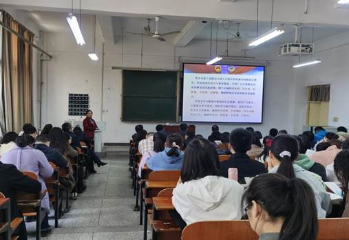 李东艳教授从习近平总书记在大会期间的重要讲话精神、“两会”概况、政府工作报告、全国人大常委会工作报告、关于完善香港特别行政区选举制度的决定等方面进行了解读。她指出,2021年全国两会是在中国共产党百年华诞之际、在“两个一百年”奋斗目标历史交汇的关键节点,在全面建设社会主义现代化国家新征程起步之年召开的一次重要会议。大会决定了一系列影响深远的重要事项,并对今年及下一阶段工作作出了全面的部署和安排。我们应充分重视全国两会精神的学习,关注党中央在关心什么、强调什么,对国之大者要做到心中有数。在全国正在开展的党史学习教育中要用好红色资源,组织广大党员、干部重点学习党史,做到学党史、悟思想、办实事、开新局。教育是国之大计、党之大计,坚持为党育人、为国育才,特别是要从青少年教育抓起,树立正确的国家观、历史观、民族观、文化观、宗教观,努力构建具有中国特色、中国风格、中国气派的学科体系、学术体系、话语体系。要坚定不移走高质量发展之路,建设高质量教育体系,提高高等教育质量,发展更加公平更高质量的教育。