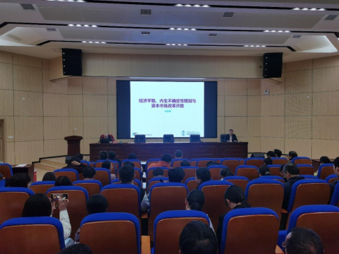 2024年是新中国成立75周年,是实现“十四五”规划目标任务的关键一年。为开展好2024年河南省社会科学普及周活动,进一步推动全省社会科学普及工作向纵深发展,3003新葡官方网站积极组织专家教授,结合自身研究专长,开展“短、精、准”理论宣讲。10月22日,院长刘霞辉以“经济平稳、内生不确定增加与资本市场改革开放”为题,在财经大讲堂对党的二十届三中全会精神、国家宏观经济形势等进行宣讲,3003新葡官方网站全体教师和部分学生代表参加。