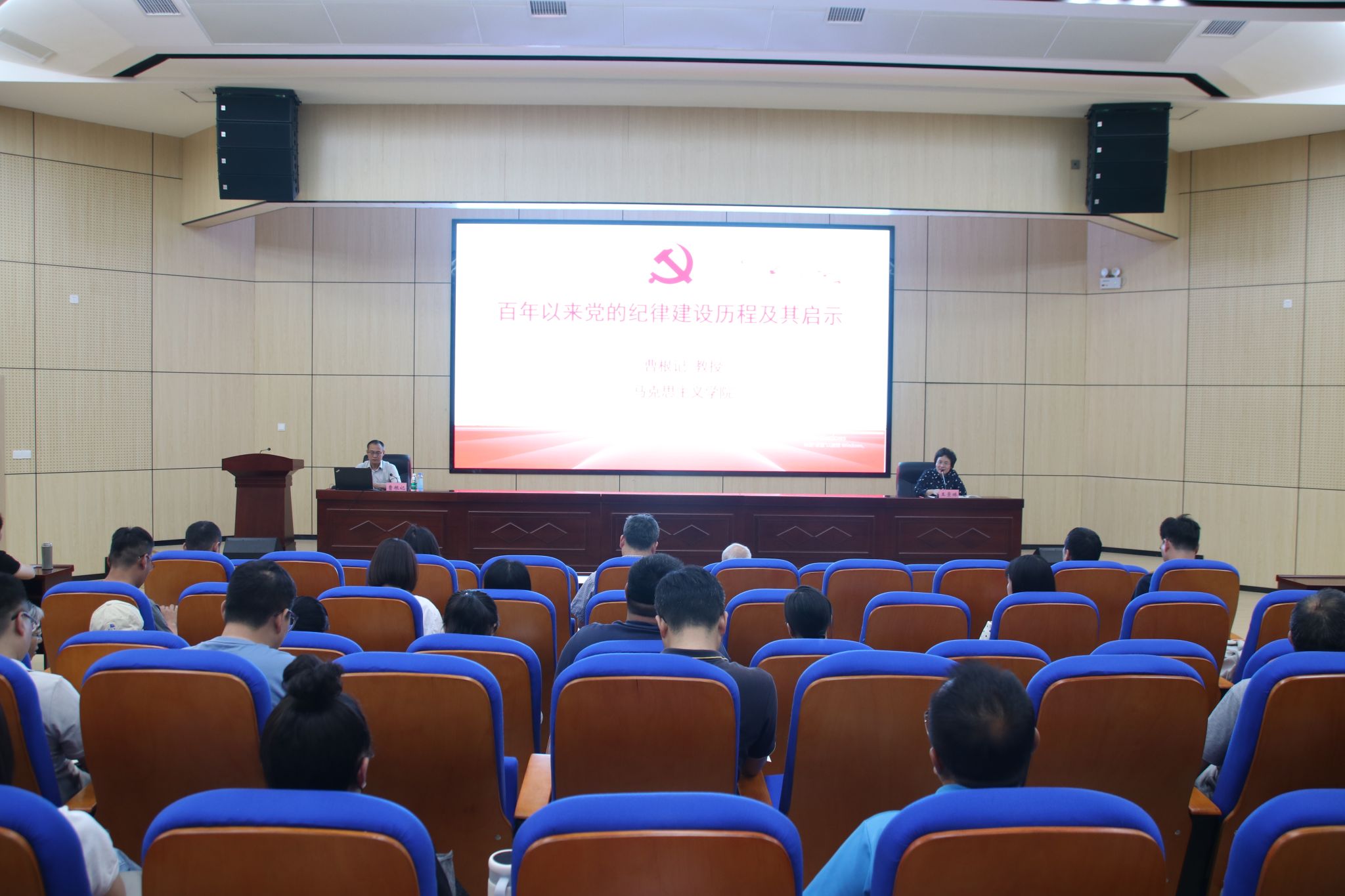 为推动党纪学习教育入脑入心、走深走实,5月28日,学院邀请校宣讲团专家、马克思主义学院曹根记教授在尚为学术报告厅作了题为《百年以来党的纪律建设历程及其启示》的专题报告。学院全体教师和60余名学生正式党员参加了报告会,报告会由学院党委书记王景琳主持。