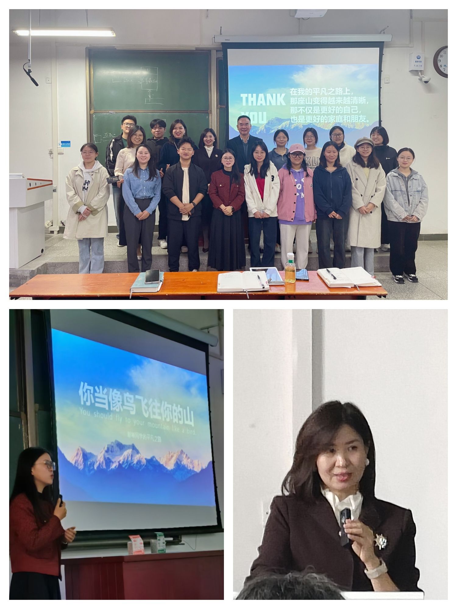 首先郭明杰老师代表金融系、金融专硕学位点热烈欢迎吕丽娜老师一行到访,感谢吕老师对学院学位点建设和专业建设的重视,为人才培养做出的积极贡献。随后,吕丽娜老师以她14年丰富的从业经历给同学们介绍了金融行业所处的时代背景,从国际、国内、投资渠道三个方面做了分析,重点介绍了当前局势下金融服务实体经济的重要意义,让同学们认识到安全性和流动性是财富管理的首要目标,并对大变局下的职业规划做了清晰的梳理,希望同学们坚定信心,勇于接受挑战。谢琳同学在经验分享中以“你当像鸟飞往你的山”为题,介绍了自己从一个普通的大学生成长为一个在金融领域有所成就的专业人士的历程。她说“在我的平凡之路上,那座山变得越来越清晰,那不仅是更好的自己,也是更好的家庭和朋友”,励志的人生经历激起了同学们的兴趣,现场气氛热烈,谢琳同学的经历让同学们认识到成长中的风雨是在浇灌人生之花的深刻寓意。