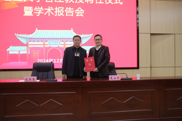 上午报告开始之前,在尚为学术报告厅举行了客座教授聘书颁发仪式。仪式由院长刘霞辉主持,副校长边亚东出席并发表热情洋溢的致辞,欢迎夏立军教授莅临我校指导会计学科建设工作,并为夏教授颁发客座教授聘书。聘任仪式结束后,夏教授作了以“大会计——横看成岭侧成峰”为主题的精彩报告。