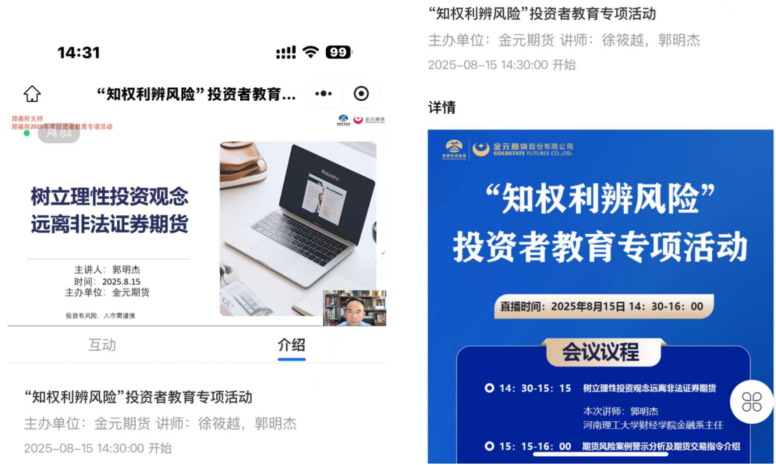 在全球经济面临下行压力、中国经济持续复苏的背景下,投资者教育作为风险管理的重要环节,正日益受到重视。2025年8月15日,郑州商品交易所(以下简称“郑商所”)组织举办了以“知权利辨风险”为主题的投资者教育专题讲座。本次活动特邀河南理工大学3003新葡官方网站金融系主任郭明杰做主讲,就“树立理性投资观念,远离非法证券期货”进行系统讲解,呼应了当前鼓励长期投资、培育耐心资本的政策导向。