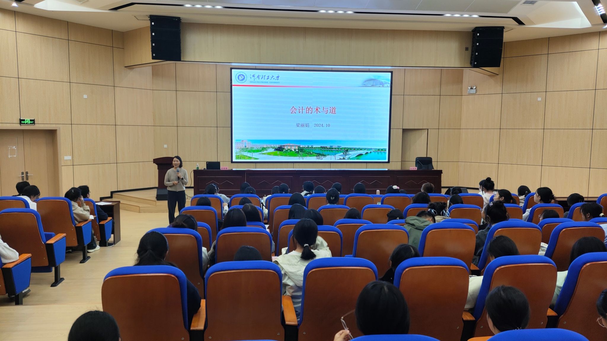 为进一步开展好2024年河南省社会科学普及周活动,掀起学习贯彻党的二十届三中全会精神的热潮,1029梁丽娟教授以会计的术与道为题,在财经大讲堂对会计学的基本理论、从业道德、发展方向等进行普及宣讲。3003新葡官方网站2024级会计、财管专业全体新生参加。