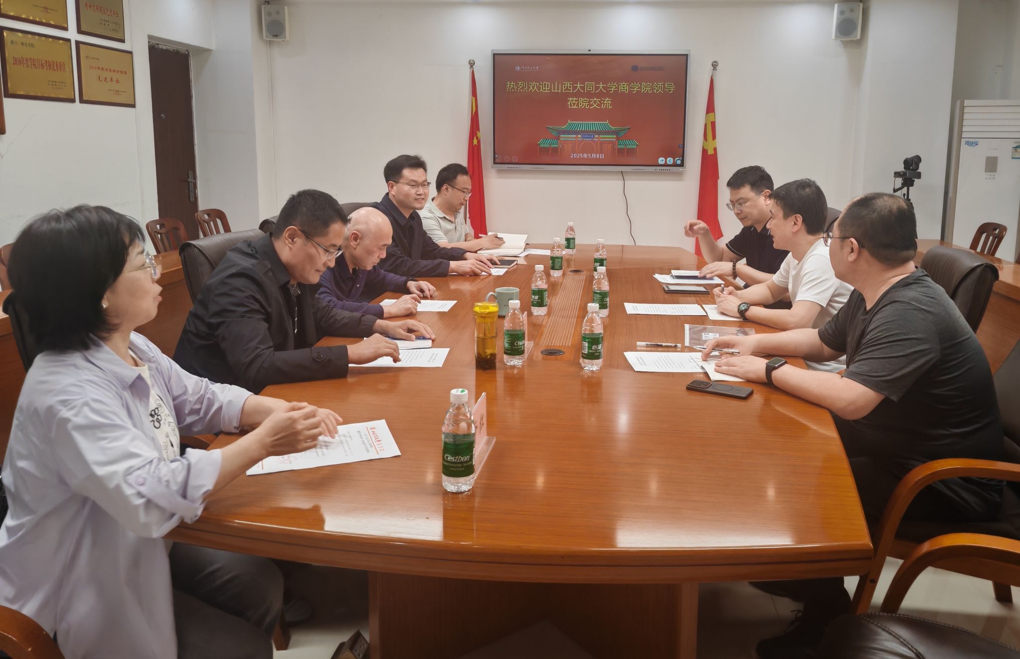 5月8日,山西大同大学商学院副院长李向荣一行莅临3003新葡官方网站,就数字经济专业建设开展专题调研交流。学院院长刘霞辉、副院长张圣利以及数字经济系相关负责人参加座谈,会议由副院长张圣利主持。
