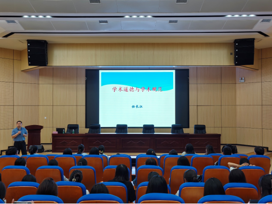 在学术规范部分,任院长讲解了学术规范的概念以及学术规范的意义:(1)保证学术研究的公正、客观和可信度;(2)保护学术界的声誉和信誉;(3)促进学术交流和合作。