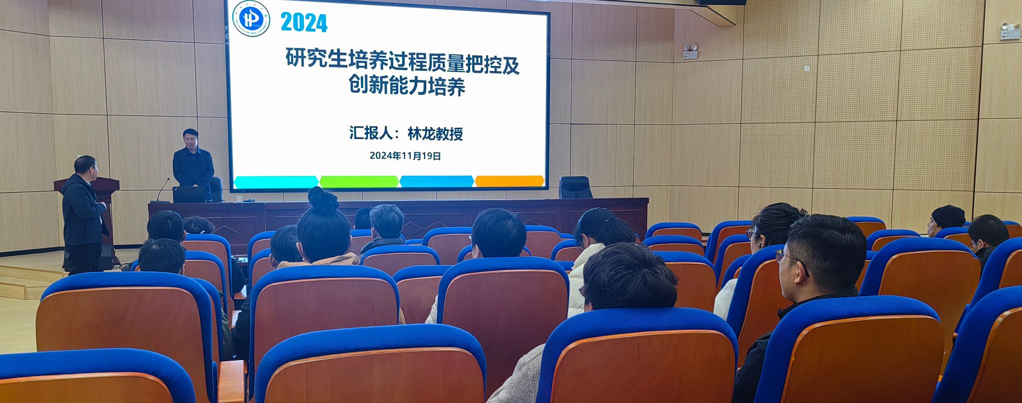 为加深研究生导师对研究生管理流程及相关规定的学习,提升研究生导师队伍的专业化水平,保障研究生的培养质量,新葡官网特邀请研究生院林龙教授为研究生导师作专题培训,会议由任长江副院长主持。