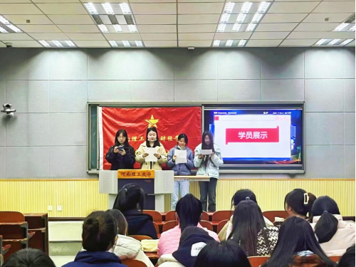 本次活动以“百年接力,强国有我”为主题,从回望百年历史、展望民族复兴以及新时代青年对自身责任的见解等方面,鼓励青马班学员以昂扬向上、不懈奋斗的姿态接过强国建设、民族复兴的历史接力棒。活动伊始,主持人带领各位学员回顾百年历史,强调学员们要牢记使命、开创未来。主持人通过对党伟大飞跃的百年历史的讲述,进一步指出学员们作为新时代青年,要坚定理想信念、勇担强国重任,将个人发展与社会实践紧密结合。在学员展示环节,学员们通过PPT讲解、诗歌朗诵、红歌演唱等形式,表达了自身对新时代青年责任的理解。现场,第三组学员以“百年赓续前行,青年奋楫争先”为主题,结合自身学习和工作经验,以青年视角展示党的真理力量和实践伟力,引起了大家的强烈共鸣。活动结束后,学员们纷纷表示要高扬奋斗风帆,让青春与时代“共行”。