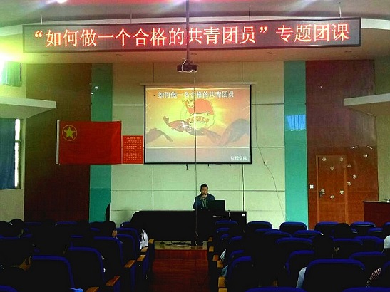 为强化团员自身的先进性和光荣感,坚定共产主义远大理想和中国特色社会主义共同理想,牢固树立“四个意识”,坚定“四个自信”,争做一名合格的团员,5月6日,新葡官网团委书记谢国强老师对各团员进行了“中原更出彩,青春正飞扬――怎样做一名合格团员”团课培训。