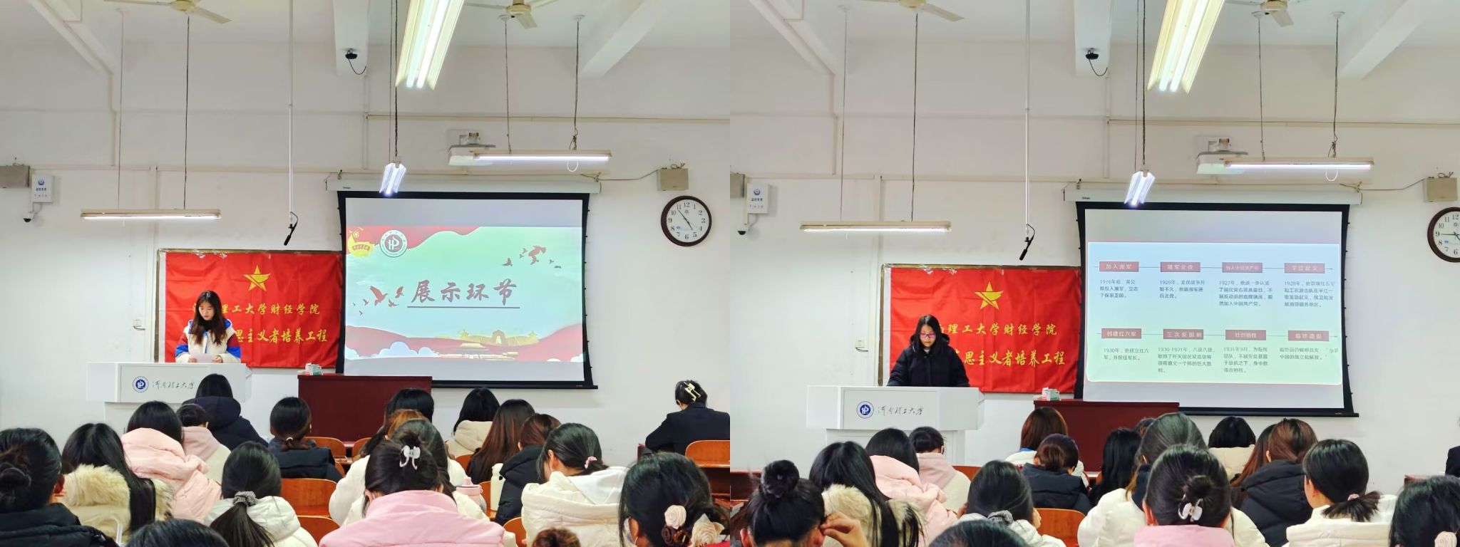 本次活动旨在通过分享红色读物与历史书籍的阅读心得,引导学员们回溯光辉而艰辛的革命历程,汲取奋进力量。首先,主持人为学员们阐述了传承红色基因、弘扬红色文化的重要意义,指出当代青年要通过阅读红色经典理论著作不断提升自身的政治觉悟。随后的选手展示环节中,七位选手依次分享了自己阅读过的红色读物,并表达了读书心得与感悟。这些分享内容丰富,情感真挚,不仅展现了大家对红色革命的信仰与追求,也反映了红色文化对个人信念的塑造力量。在分享过程中,马启菲选手以《毛泽东诗词集》为切入点,向大家介绍了中国共产党早期领导人黄公略,带领大家领略到共产主义者的无畏精神,也呼吁青马班学员们以先辈为镜,增强个人责任感与使命感。最后,活动在热烈的掌声中圆满结束。
