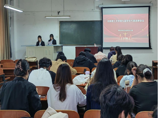 4月30日下午,新葡官网学生会综合办公室在经管楼1111教室举行了河南理工大学第九次学生代表大会和研究生代表大会代表选举会。新葡官网学生会、研究生会和班委成员参加了此次会议。会议由陈可莹和周文静主持。