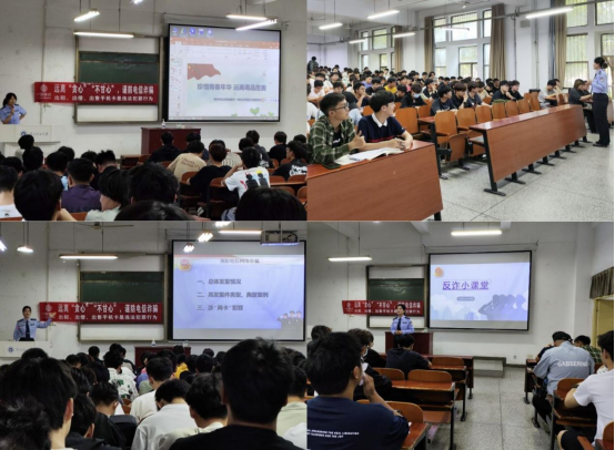 苏警官首先向同学们讲述了我区总体案发情况,并指出我校案件高发,被骗数额巨大。随后,他给同学们介绍了刷单返利,约炮诈骗,冒充熟人,投资理财,买卖游戏账号等多种常见网络诈骗手段。通过分析讲解不同诈骗类型的具体案例向同学们讲解了相应的防范措施和应对策略,并传授了如何识别诈骗信息、如何报警求助等常用技巧。接下来,他提醒同学们警惕“两卡”犯罪并引导同学们下载国家反诈中心APP。最后,李警官向同学们介绍了传统毒品的种类和危害,并通过视频警示同学们远离毒品,珍惜大好青春。