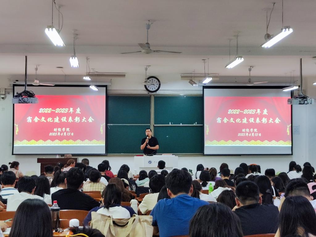 6月13日下午,财经学院2022-2023年度宿舍文化建设表彰大会在3102教室隆重举行。院党委副书记张良、全体辅导员、全院宿舍长和获奖代表共计260余人参加了表彰大会。大会由辅导员王妍主持。