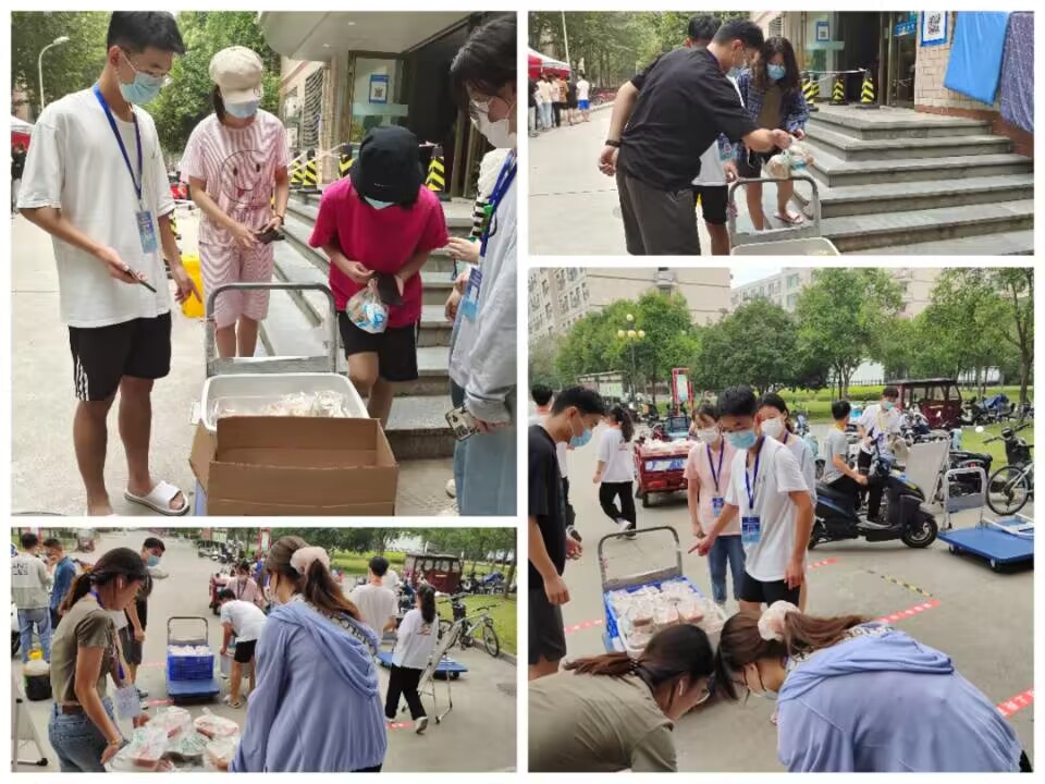 送餐期间,志愿者们不惧困难,甘于奉献,克服各种困难,用力所能及的力量助力疫情防控工作。早上七点,志愿者们就开始了一天的志愿服务活动。每餐提前统计好数量上报学院,根据订餐数量安排适当的志愿者并确定好各种相关细节事宜。取餐后,按照宿舍楼划分原则,将餐食配送到宿舍门口,让同学们方便、简单、快捷地取餐,有效地解决了同学们的用餐问题。志愿者们科学有序地参与疫情防控工作,用实际行动诠释青年人的使命担当,成为了校园里靓丽的一道风景线。