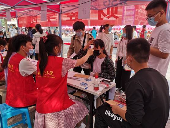 早上6:00,迎新现场各项工作已布置妥当,学院各相关部门的迎新人员也准备就绪。在指导老师和学生志愿者的引导下,20级学生陆续地前来报到,填写个人信息,办理入学手续和宿舍入住手续。学生志愿者们统一身穿红色马甲,佩戴工作牌证,帮助新生看管行李,指引道路,表现了学长学姐们对20级新生的欢迎与热爱。新葡官网教工党员志愿者们组成服务车队,亲自在校门口接待新生,帮助他们搬运行李并送回宿舍,深刻体现了新葡官网老师对20级学子的关怀与照顾。此次活动过程中,新葡官网积极响应国家防疫号召,高度重视学生身体健康问题,要求学生统一上交个人健康登记表,并对入校学生进行体温测量,严格禁止不相关人士、带有不良症状学生入校,保证在校学生人身安全。其次,新葡官网老师非常关心20级学子的家庭情况,关注贫困学子,亲自在迎新处询问新生家庭情况并通知“绿色通道”等相关事宜,为贫困生提供了一定的生活保障。为进一步获取新生动态,了解学生个人情况,新葡官网老师多次亲临现场,给予新生鼓励与关怀。