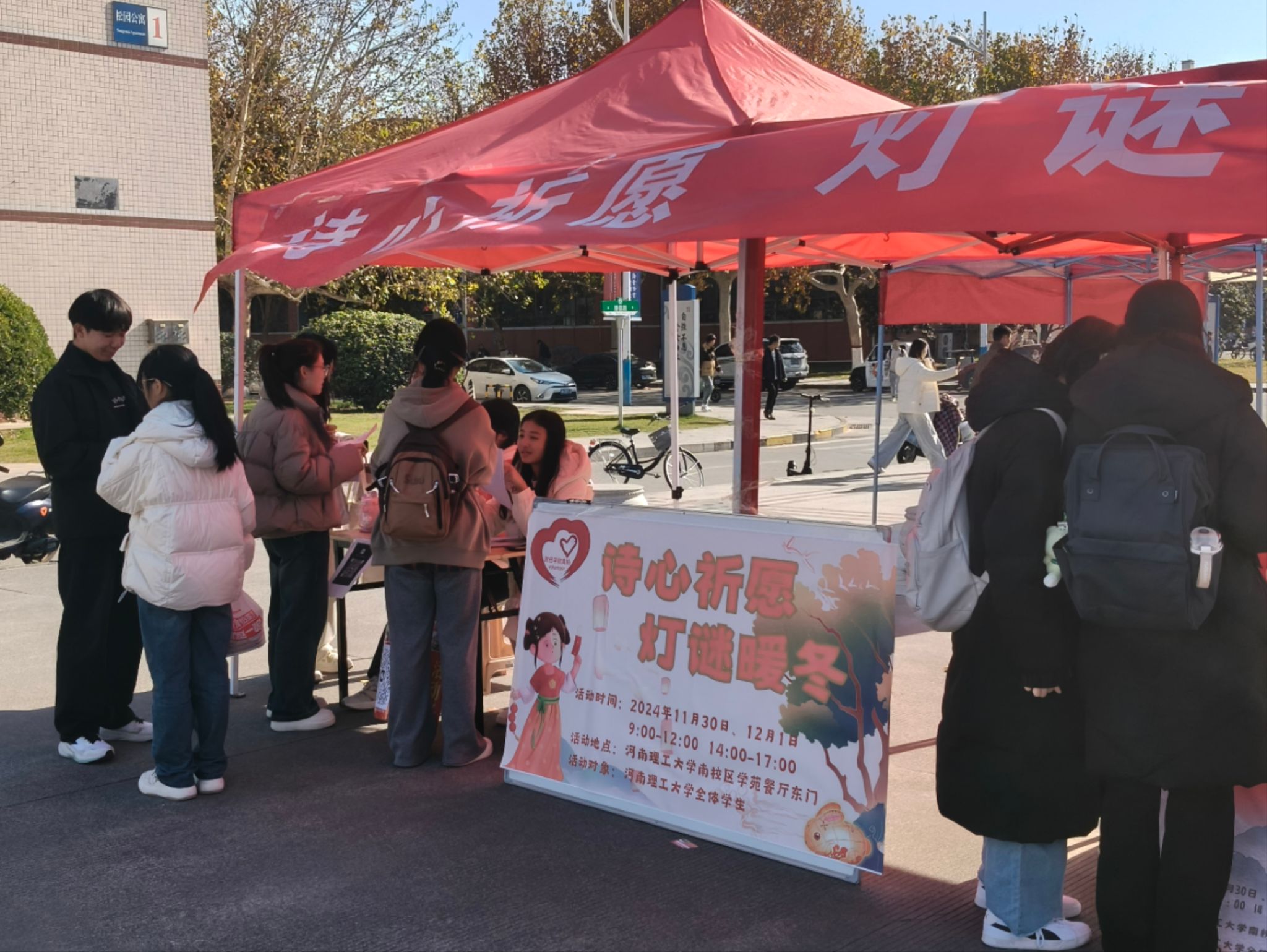 为弘扬传统文化,展现文化底蕴,增进同学们的凝聚力与创造力,11月30日至12月1日,财经青协于学苑小广场举办以“诗心祈愿,灯谜暖冬”为主题的暖心活动。