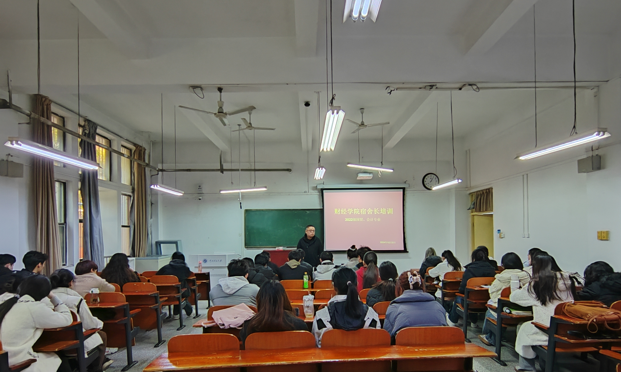 为进一步加强宿舍管理、营造良好的宿舍环境,12月2日中午,2022级国贸、会计专业本科生在经管楼1111召开宿舍长培训会,丁冬老师就宿舍管理和宿舍安全方面展开培训。