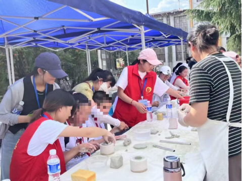 活动现场,志愿者们分组展开陶艺教学指导,通过示范,协助儿童掌握揉泥、塑形、雕刻等基础技法。在互动过程中,志愿者以专业且耐心的方式引导孩子们发挥创意,将抽象构思转化为实体作品,同时注重培养其动手能力与艺术感知。陶泥在孩子们的塑造下逐渐呈现独特形态,课堂氛围既专注又充满活力,展现出艺术教育与志愿服务的有效结合。