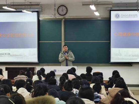 2月27日下午,3003新葡官方网站在三号教学楼3106教室召开新学期心理健康与宿舍安全管理教育大会。学生干部代表和全体宿舍长共270余人参加会议。学院党委副书记张良出席会议并讲话。会议由辅导员王妍主持。