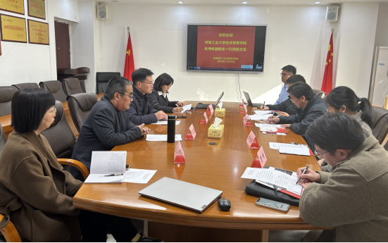 张圣利首先对河南工业大学经济贸易学院一行的到来表示热烈的欢迎,并介绍了学校和学院的基本情况、学院专业建设和实验室建设的最新发展情况,以及数智化时代利用产业学院加强产教融合助力专业建设的新思路。金融系党支部书记吕淑丽介绍了专业培养方案的制定、修订的思路以及区块链综合实训软件教学情况。随后河南工业大学经济贸易学院副院长朱坤林对到访人员进行介绍,并介绍了河南工业大学经济贸易学院的基本情况及在专业建设方面的举措,并希望以后在找准专业人才培养定位、优化专业课程设置、提升专业教学效果等方面进行深度合作。