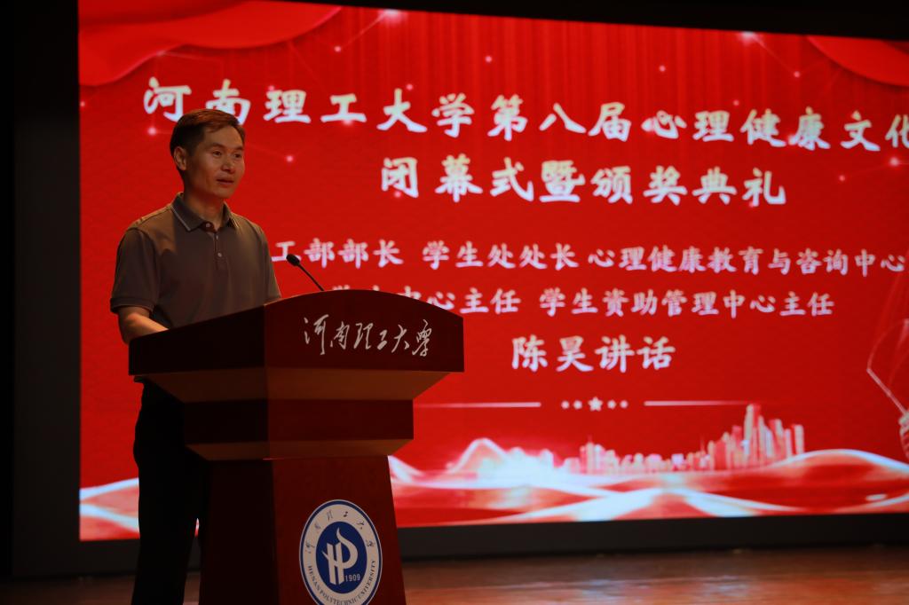 党委学工部部长、学生处处长、心理健康教育与咨询中心主任陈昊总结讲话,向在本届心理健康文化节中获奖单位和个人表示祝贺,向热心从事心理健康教育工作的师生表示感谢。就全面加强和改进我校大学生心理健康教育工作,提出了三点希望。一是要肩负心理健康教育工作新使命,充分认识心理健康教育工作的重要性,主动担起学生健康成长指导者和引路人的责任,要回归本分,潜心育人;二是要明确心理健康教育工作新任务,聚焦立德树人,聚焦制度创新,聚焦平台建设,提高育人效率;三是要牢固树立健康第一的理念,确保健康教育全覆盖,明确人人都是自己健康的第一责任人,积极学习心理健康知识,形成对心理咨询的科学认识。