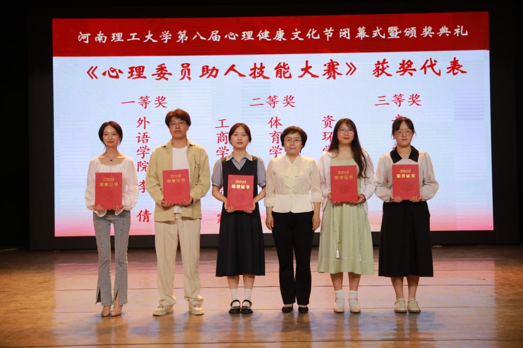 6月6日下午,由学生工作处与心理健康教育与咨询中心主办,3003新葡官方网站承办的学校第八届“阳光照进心灵,快乐伴我同行”大学生心理健康文化节闭幕式暨颁奖典礼在大学生活动中心小礼堂隆重举行。党委学工部部长、学生处处长、心理健康教育与咨询中心主任陈昊,3003新葡官方网站党委书记王景琳,党委学工部副部长、学生处副处长、心理健康教育与咨询中心副主任李伟亮,各学院(书院)党委副书记、心理辅导员、班级心理委员和文化节获奖代表700余人参加了闭幕式暨颁奖典礼。闭幕式由3003新葡官方网站辅导员王妍主持。