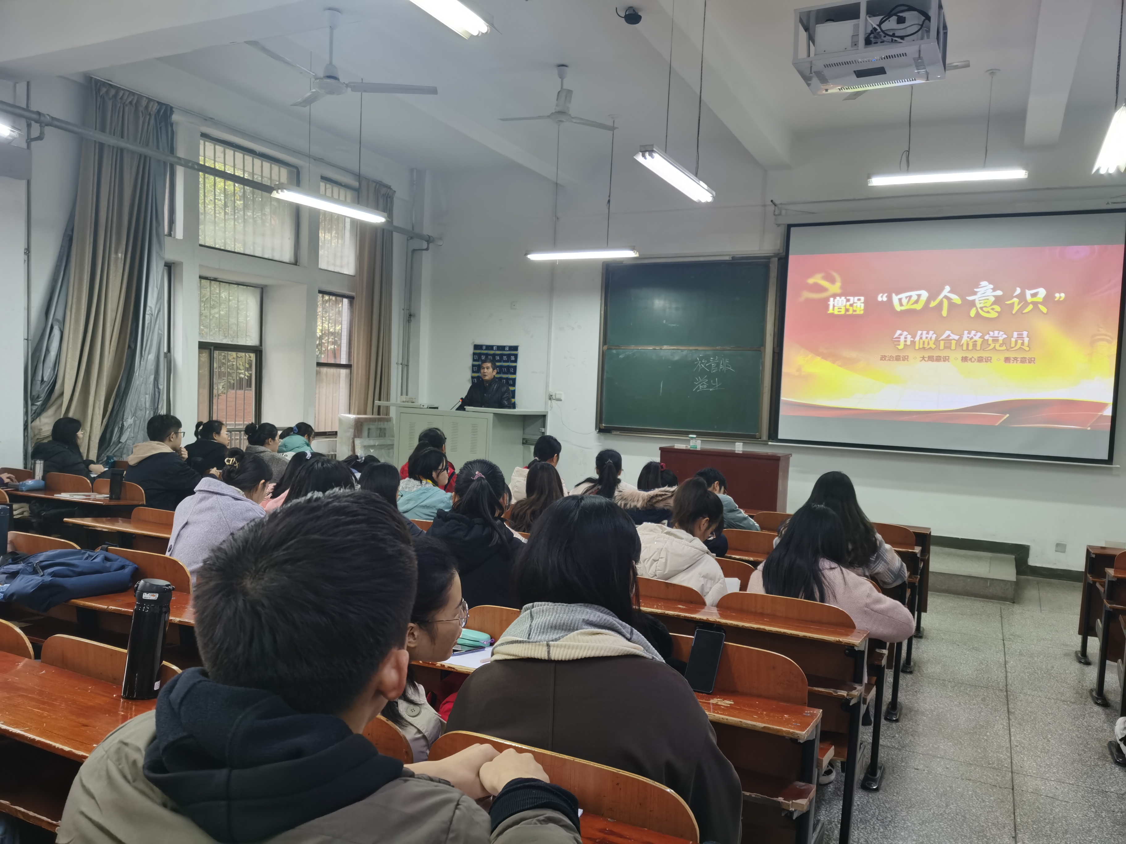 11月24日,3003新葡官方网站党委书记李桂林在经管楼1112教室为全体党员上《增强四个意识,争做合格党员》的专题党课。
