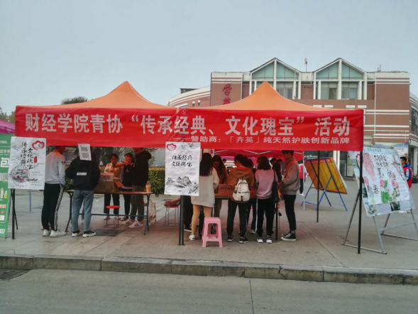 为加深同学们对古代文化常识的了解,感受传统文化的魅力,弘扬志愿者精神。新葡官网青协于11月9至10日在学苑餐厅东门举办了“传承经典,文化瑰宝”活动。