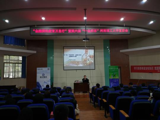 4月23日,学院在经管楼学术报告厅举办“金融国民教育万里行”暨第六届“中金所杯”全国大学生金融知识大赛宣讲会。宣讲会邀请到国元期货郑州营业部营销总监赵永辉、主管苗永旺和机构部经理秦卫立就大赛相关情况进行了介绍说明。新葡官网16级金融、国贸专业全体学生参加了此次宣讲会。