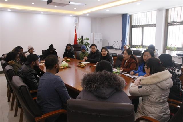 1月4日下午,新葡官网留学生座谈会在经管楼2102会议室举行。院长梁丽娟,党委副书记辛文昉,国贸系副主任王丽萍,留学生班主任张琳琳、辅导员薛冰等领导和老师及17位留学生参加了此次座谈会。