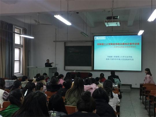 为提高新葡官网师生学法守法的意识,11月30日下午,学院在经管楼1112教室举办了法律知识宣传讲。讲座由我校文法学院教师刘建新主讲,新葡官网师生参与了活动。